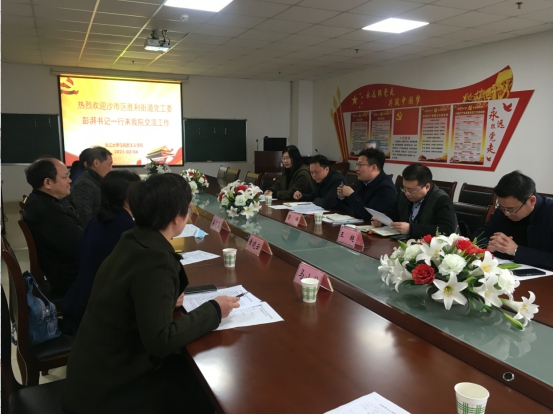 为加强校地合作,3月4日,沙市区胜利街道党工委书记澎湃等一行5人来访球王会平台,与全体院领导进行了交流座谈,会议由吴智勇书记主持。