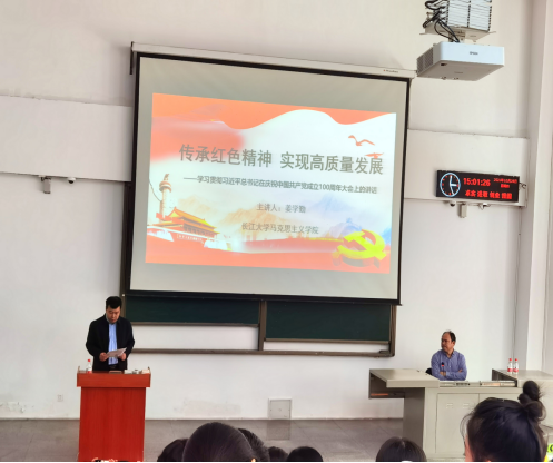 (通讯员谭梦媛)2021年10月28日下午,球王会平台,球王会网站院长姜学勤教授应邀在武汉校区B101以“传承红色精神 实现高质量发展”为题为武汉校区师生作学习贯彻习近平总书记“七一”重要讲话精神专题辅导报告,报告会由资环学院党委书记张科主持,容纳300余人的会场,座无虚席,师生们共同享用了这场精神盛宴。