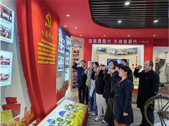 在枪杆村党员群众服务中心,图书馆馆长王红松和球王会平台,球王会网站党委书记刘小燕共同为该村延安精神教育馆捐赠了近百册党史党建类图书。随后,全体参学支部党员在该村原党支部书记邢昌焕与村“两委”班子成员的带领和讲解下参观了枪杆村延安精神教育馆,沉浸式学习延安精神、农耕文明史、村发展史,重温入党誓词。并围绕“大力弘扬延安精神,党建引领村居高质量发展,着力推进乡村振兴”开展了专题交流研讨。随后,还实地参观了枪杆村特色村组以及荆州市农甜农业发展有限公司,调研学习智慧农业、基层治理、美丽乡村建设等成功经验。