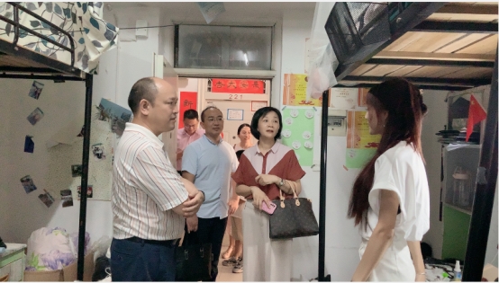 (通讯员:齐晓杭)在2022届毕业生离校之际,学院党委书记刘小燕、院长姜学勤、副院长涂江波、院长助理李振华、班主任汤波兰与辅导员张云雾、李敏老师共同走进寝室欢送毕业生。