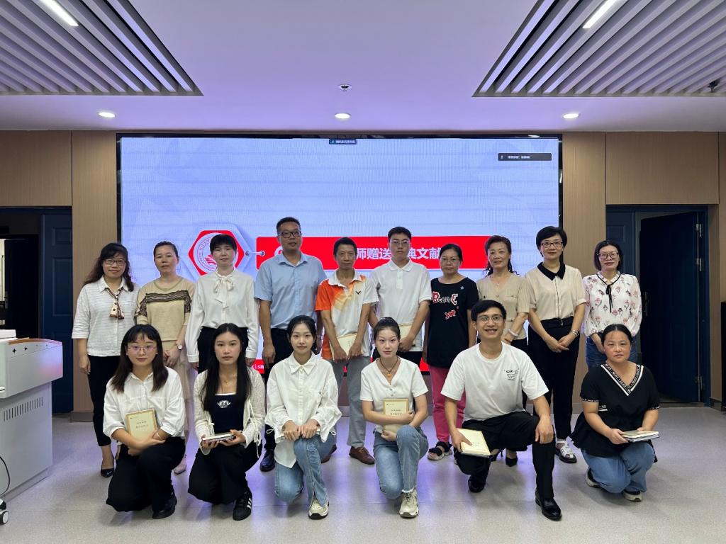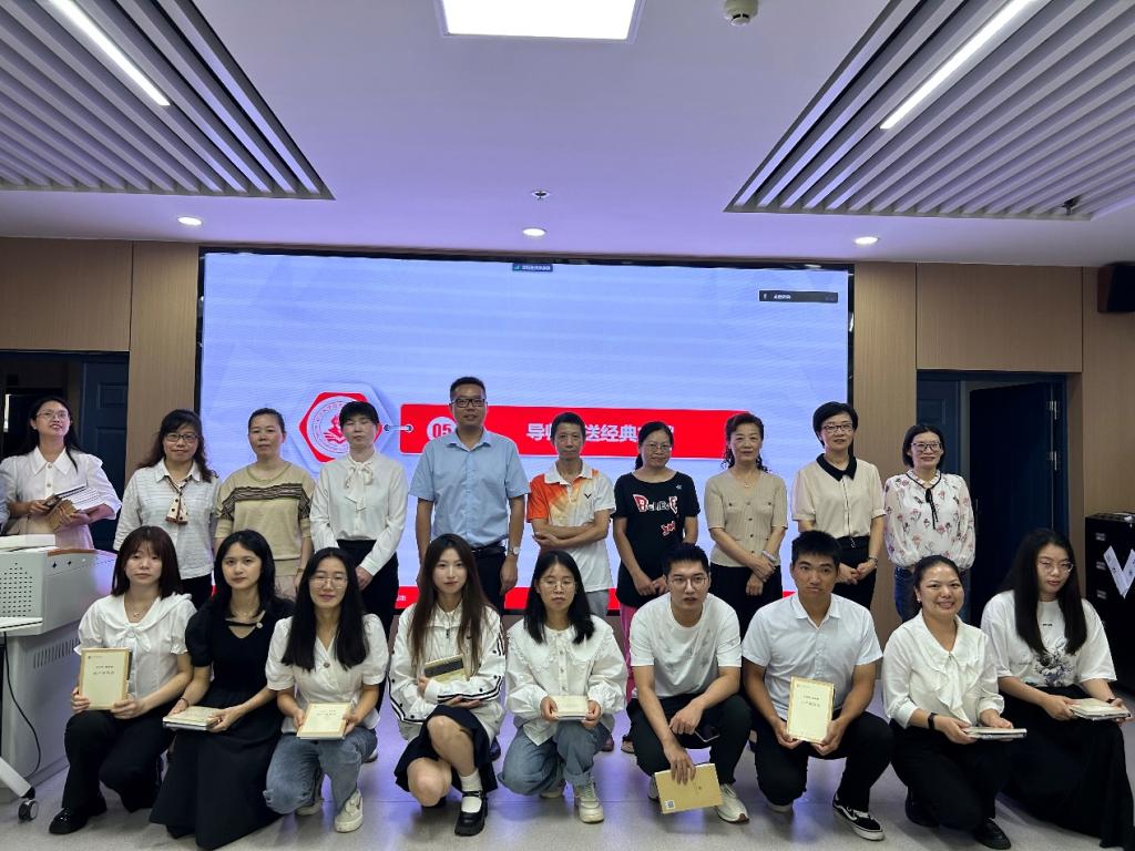 师生发言完毕后,导师团队轮流为新生发放笔记本、专业书籍,对学生暖心问候,殷殷嘱托。