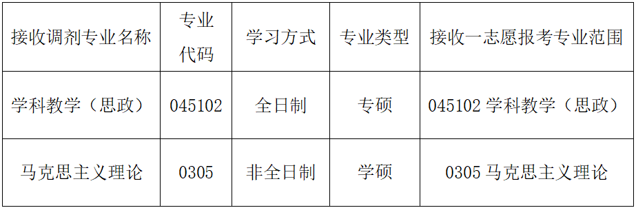 根据教育部发布的《2026年全国硕士研究生招生考试考生进入复试的初试成绩基本要求》和第一志愿考生复试结果进行测算,球王会平台科教学(思政)专业(全日制)、马克思主义理论专业(非全日制)尚有部分调剂名额,拟接收调剂生源,欢迎广大考生报名申请调剂至我校学习深造。现将有关事项公告如下: