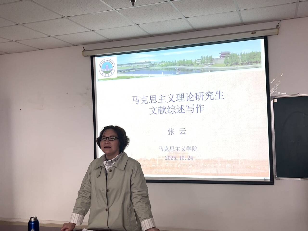 张云副教授聚焦“马克思主义理论研究生文献综述写作”作专题分享。她从文献检索方法、分类整理技巧、写作规范要点切入,结合具体实例详细讲解文献综述的撰写逻辑与常见问题,为研究生论文写作提供了极具实用性的指导。