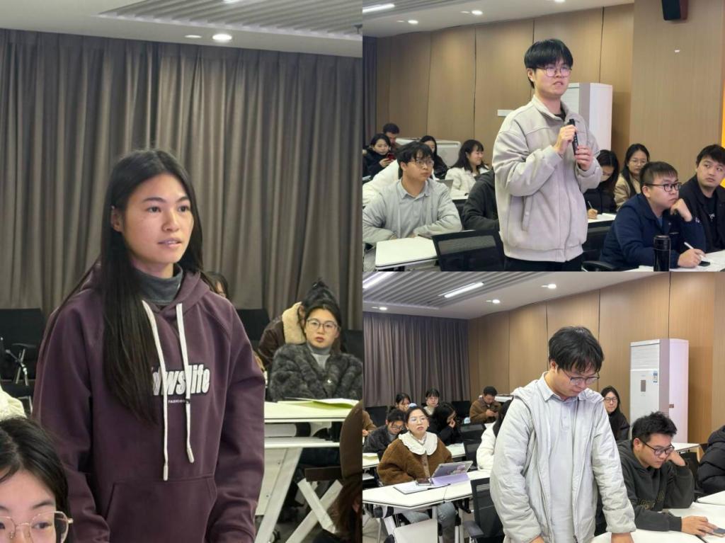 在互动环节,现场师生踊跃提问,围绕“基层治理中道德倡导与法律约束的边界划分”“思政课中德法融合教学的具体路径”等问题与戴茂堂教授深入交流。针对“如何平衡校园管理中的规则执行与人文关怀”这一提问,戴教授结合高校实际案例回应,强调要立足青年学生成长规律,让法律底线与道德温度相辅相成,既坚守规则刚性,又传递育人温情;对于“马克思主义理论学科与法学、伦理学的交叉研究方向”,他建议同学们立足思政教育核心,拓宽学术视野,挖掘多学科融合的研究亮点。整场互动氛围热烈,提问精准深刻,解答兼具专业性与指导性,让在场师生深受启发。
