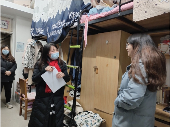 本次查寝由辅导员张云雾、李敏老师及学生会主要成员组成了5个查寝小组,分别走访了全院各年级本科生寝室。
