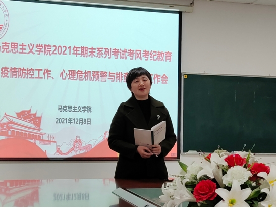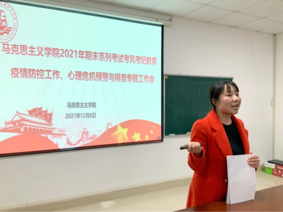 (通讯员、摄影:齐晓杭)12月8日下午6时,球王会平台,球王会网站在文科楼1104室召开期末系列考试考风考纪教育及疫情防控工作会议,本次会议由学工办主任张云雾主持,学院党委副书记马小佼、辅导员李敏出席会议。本研各班级的班长、团支书、副班长兼安全委员、心理委员及学生会、研究生会主要成员到场参会。