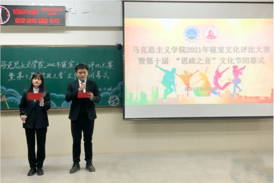 (通讯员:王晓彤 摄影:齐晓杭) 思政之音青春昂扬,百年党史岁月峥嵘。11月26日晚7时,球王会平台,球王会网站于12教102室举行2021年“心宿暖阳 乐寝无忧”寝室文化评比大赛暨第十届“思政之音”文化节闭幕式。学院党委书记刘小燕,院党委副书记马小佼,院长助理李振华,学院教师张志超、王贤锋、孙萌、彭孝光、何波、饶玲、陈质晶,学工办主任张云雾,辅导员李敏及2020级、2021级全体学生齐聚一堂欣赏寝室风采,回顾本届文化节精彩片段。
