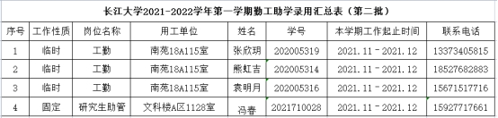因工作需要,经学生本人申请,学院审核,现将球王会平台2021-2022学年第二学期勤工助学拟录用名单(第二批)公示如下: