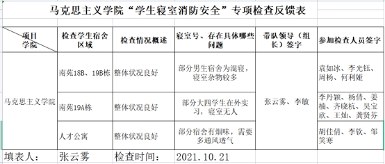 (通讯员:郜越)为了营造学生宿舍安全、卫生、整洁、健康的生活环境,2021年10月21日下午,球王会平台,球王会网站组织开展了冬季学生宿舍消防安全检查。本次检查由年级辅导员张云雾、李敏老师带队,学生会和研究生会生活部及部分寝室长参与了自查。本次消防安全检查覆盖了全院本、研学生寝室。
