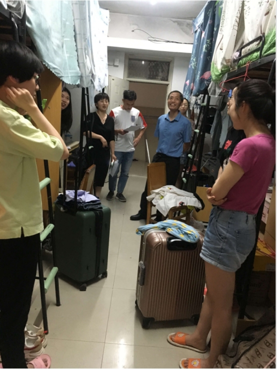 学院领导走访宿舍,了解毕业生离校情况,传达了学院对学生的关心,加强了同学们对母校的感情,让同学们深深感受到了学校的温暖和关爱。