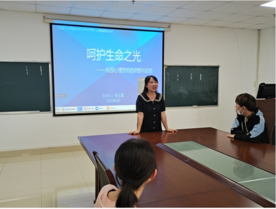 张老师主要从“感知生命的意义——认识生命的价值”“应对生命的挑战——识别心理危机”“呵护生命微光——助人与自助”三个方面进行了系统讲解通过生活中的事例引入,展现出生命的价值与意义。再从“心理健康的人是什么样子的”“大学期间常见的心理问题”“大学生常见心理障碍——抑郁症、精神分裂症”“从心理问题到心理危机”和“出现心理危机的原因”五个方面进行了详细的介绍,讲解了如何判断一个人的心理健康是否出现了问题,提醒学生干部要提高观察力,善于发现危机线索。引导学生在出现心理危机时学会如何自救和求救。同时也强调了身为学生骨干的工作职责和任务,需要增强责任感。