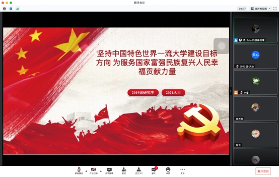 2019级研究生围绕“百年大计,教育为本”“一流大学群体的有力支撑”“当代中国青年”“教师:教育的中坚力量”四个内容进行了主题研讨。