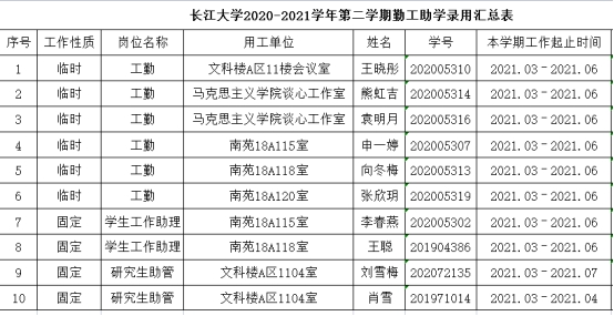 经学生本人申请,学院审核,现将球王会平台2020-2021学年第二学期勤工助学拟录用名单公式如下: