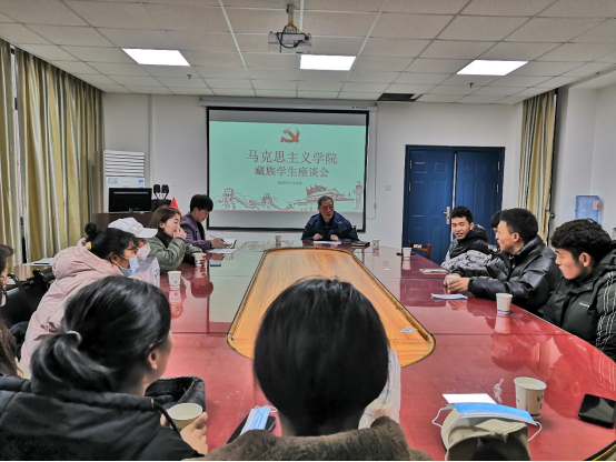 会议伊始,13位藏族同学分别进行了一个简短的自我介绍,同时也分享了各自在近期的学习、生活等各方面的情况。大四的仁青伦珠同学主要是谈到大四毕业论文的文献查询困难,其他大多部分的同学都谈到自己在学习英语方面存在一定的困难和对于英语四级报考时间的安排。接着,为了更加深入了解藏族同学们的状况,马书记根据藏族同学们的分享,首先询问学生们的在本学年的贫困生入库和奖助学金的情况;其次对藏族同学的宗教信仰情况进行询问和了解;紧接着针对上一学期疫情在家学习情况了解西藏地区网络状态,关心藏族同学们在家学习的情况和上网流量费用;最后就未来的职业规划问题对藏族同学进行询问和了解。最后由吴智勇书记对此次座谈会进行总结,首先吴书记根据藏族同学们的英语学习困难提出一系列有效的建议;接着鼓励藏族同学们要敢于去展示自己,不要羞怯;其次,也表达了希望藏族同学不仅仅要传承自己藏族的优秀文化同时也要在去学习和吸收汉族的优秀文化,促进两种文化在交流中进步和发展;最后,吴书记对藏族同学提出同学们要提高自我的标准的要求,在生活中大方一点、主动一点,多班级同学交流。