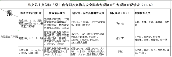 根据学工处《关于开展2020年冬季学生宿舍饲养宠物与安全隐患大检查的通知》要求,球王会平台,球王会网站于11月5日下午16:30组织开展了学生宿舍大检查工作,副书记马小佼、辅导员张云雾、辅导员李敏分别带领学生干部检查了位于人才公寓、南苑18栋、19栋,校内成套公寓的全院本、研学生寝室,重点检查了饲养宠物与安全隐患情况,关心学生学习、生活状况。学院各宿舍寝室卫生状况良好,无饲养宠物等违规行为,学生精神面貌良好。