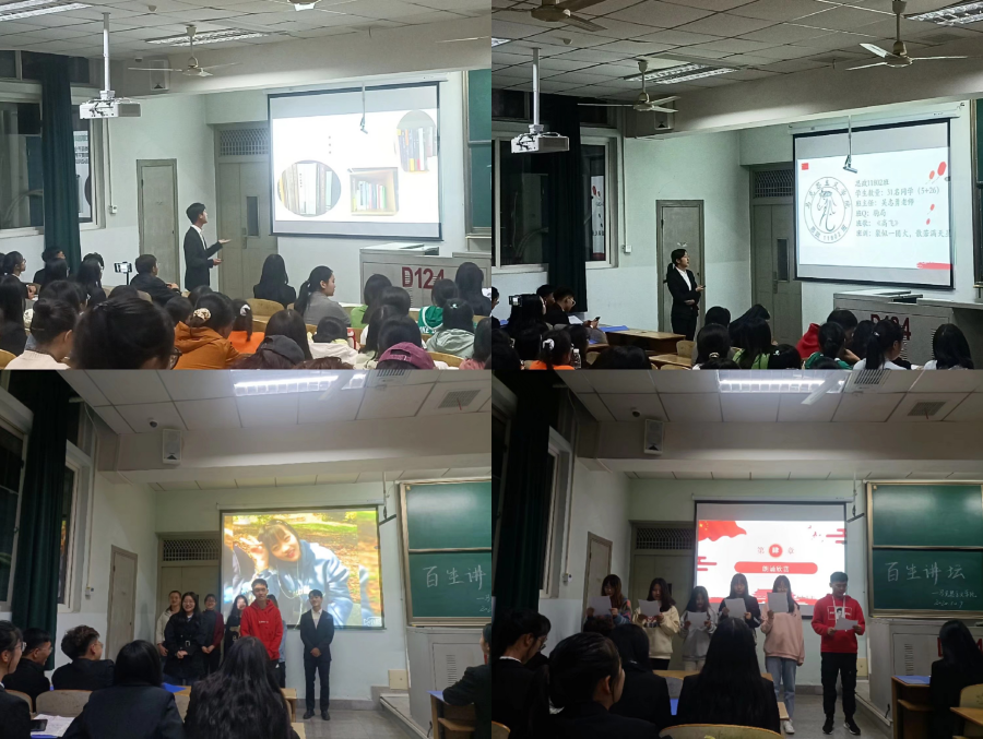 (通讯员:黄楚悦)为推进习近平新时代中国特色社会主义思想进支部、进社团、进网络、进团课,球王会平台,球王会网站于10月9日晚7:00在13教D124开展了“长大青年说”——“百生讲坛”活动,学工办主任张云雾,学生会主席、部长及相关工作人员和大一全体同学参加本次活动。
