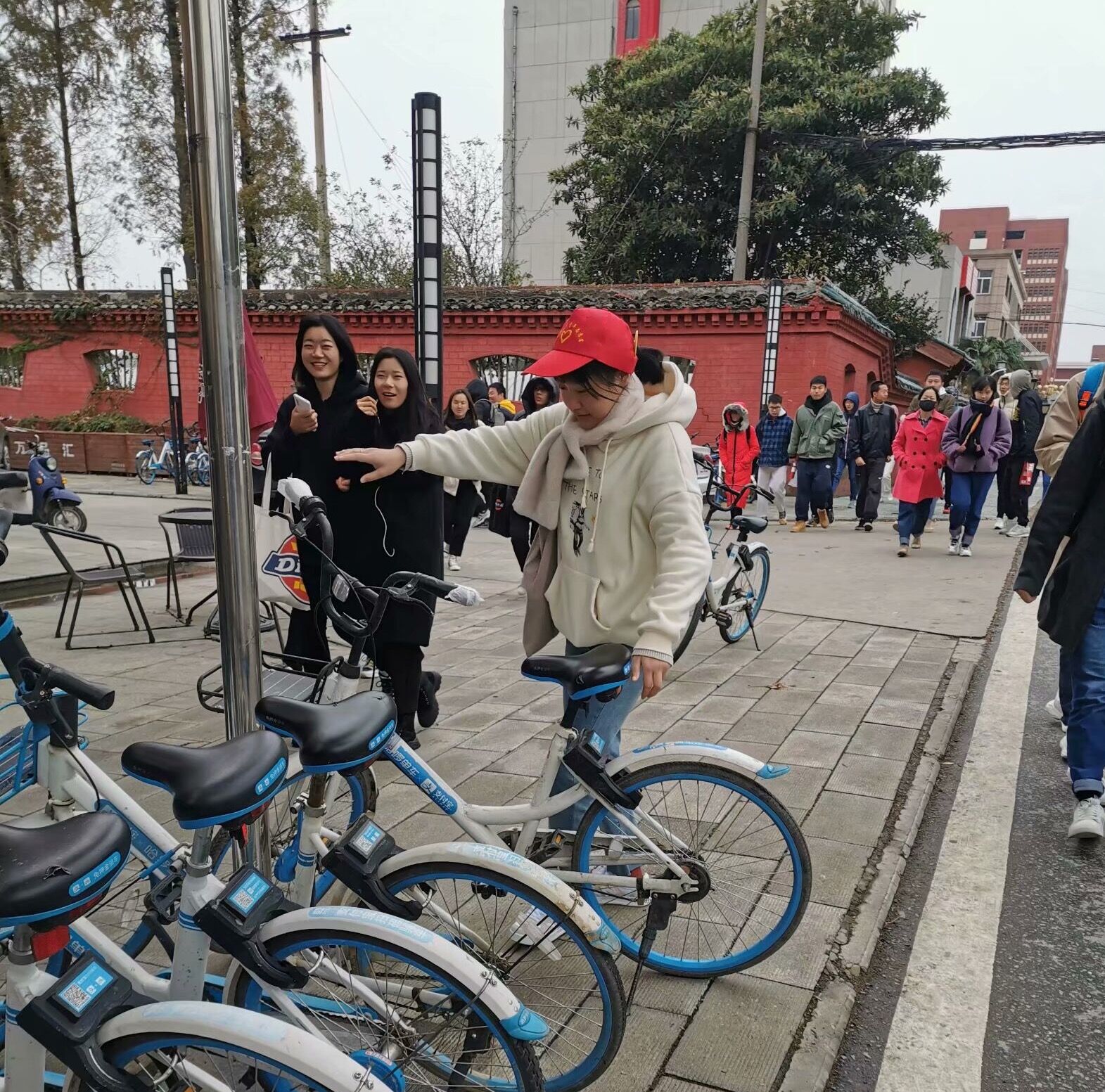天气逐日恶劣,风雨交加,但球王会平台志愿者刘新美,郑国琴,吴伦广,张文树等同学不畏严寒,按时到达执勤点,坚守岗位,并对附近的共享单车进行有序摆放,营造文明和谐的校园环境。