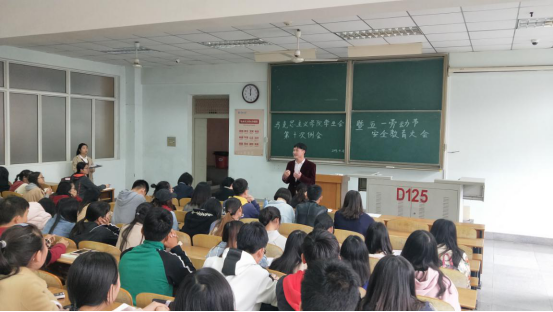 会议伊始,主持人邱诗琪代表全体学生会成员对四位老师的到来表示热烈欢迎。紧接着,辅导员张云雾对新辅导员李敏进行介绍以及表达了对新辅导员欢迎与期待,之后辅导员李敏也进行了简单的自我介绍,表达了加入马院这个大家庭的高兴。随后,学生会各部门和主席团对近期工作进行汇报。辅导员张云雾布置完本周工作之后,会议进入了五一劳动节安全教育环节。辅导员张云雾提醒学生要时刻牢记交通安全、防溺水安全、生活安全等。同时,她强调各班级要核实五一劳动节假期出行请假情况是否属实,学工办将安排专人进行电话核实。