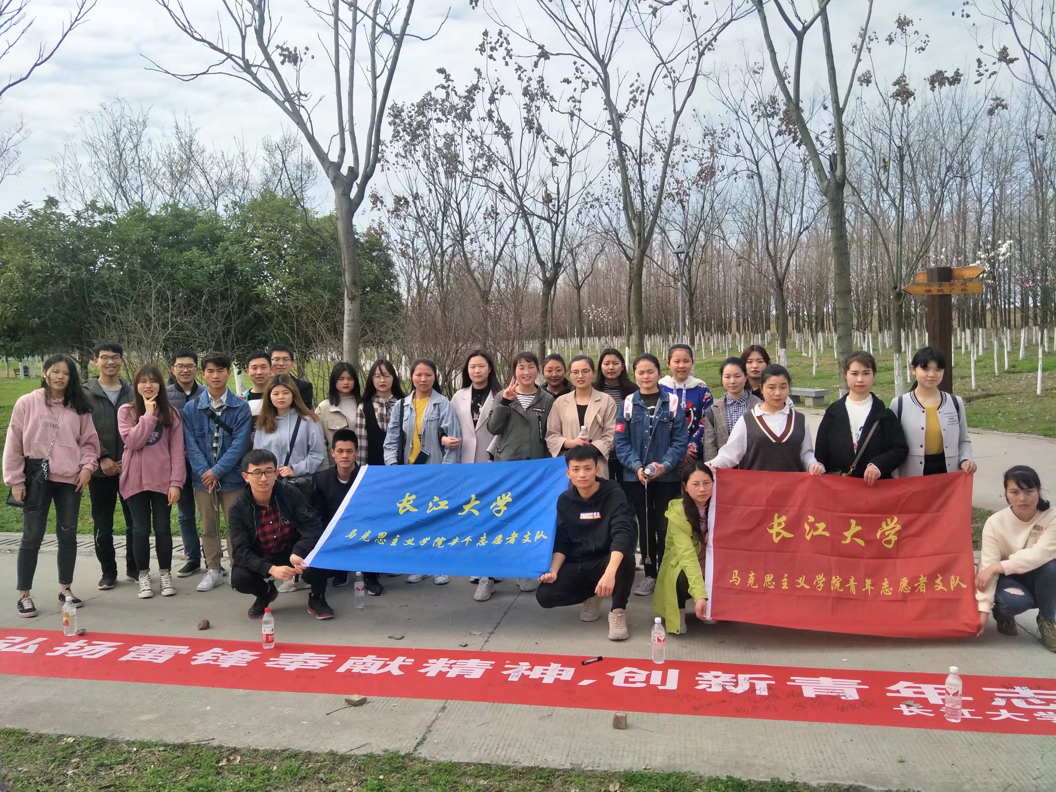 志愿者一行从南苑出发,手持清扫工具,步行至滨江公园内,沿途就已经开始了垃圾清扫工作。在步入滨江公园后,志愿者们热情高涨,配合默契,认真地打扫着滨江公园的每一个角落。时值阳春三月,滨江公园的游客众多,行人留下的垃圾自然也随之增多。经过两个小时的努力,终于完成了垃圾清理工作。稍作休整之后,全体志愿者在弘扬雷锋精神的横幅上签上自己的名字,争做雷锋精神的弘扬者、社会主义核心价值观的践行者。