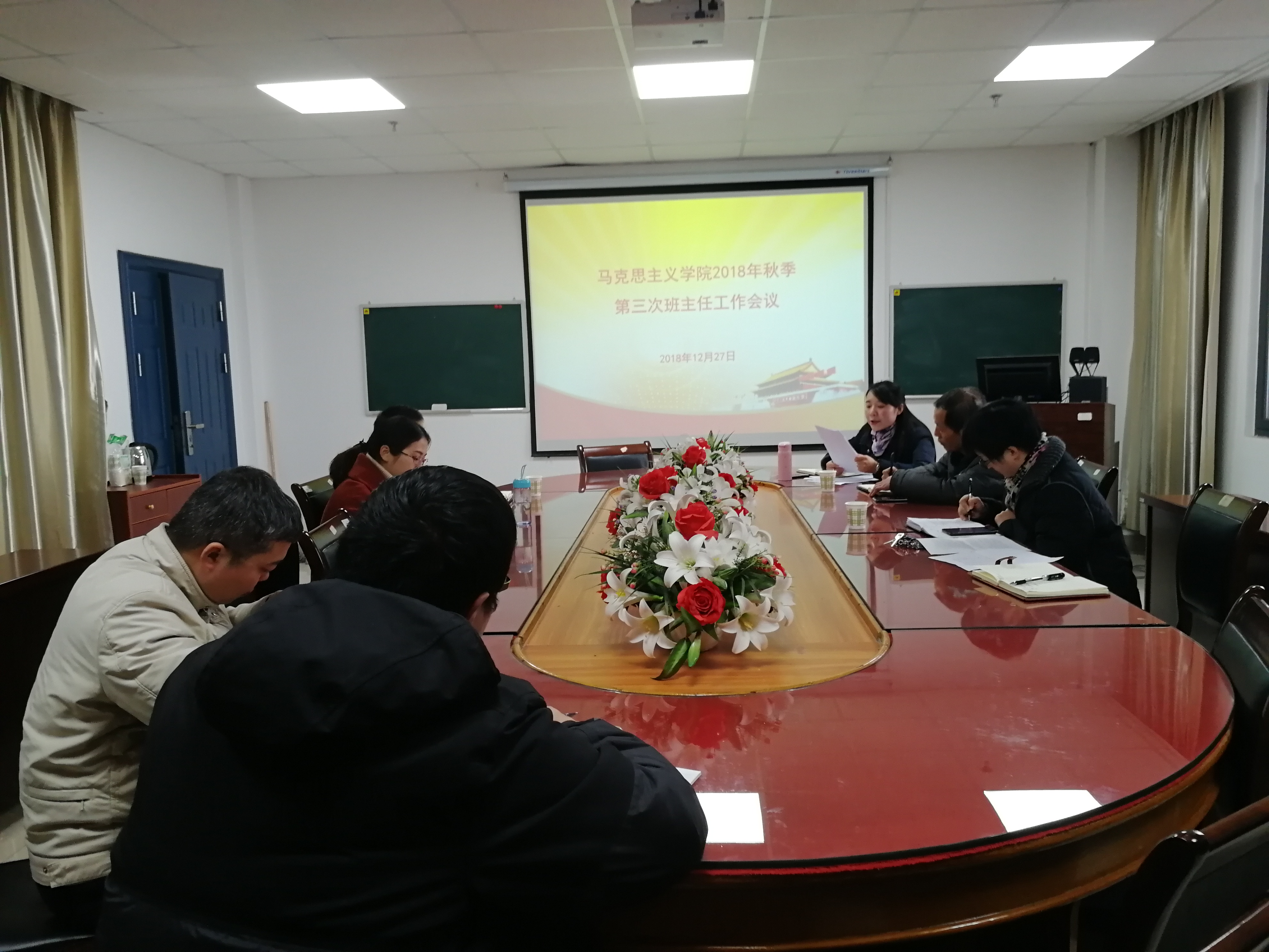 球王会平台,球王会网站于12月27日下午2点半在文科楼1125会议室召开本学期第三次班主任工作会议。参加本次班主任会议的有球王会平台,球王会网站党委书记吴智勇老师、球王会平台,球王会网站党委副书记马小佼老师以及马院全体班主任。会议由球王会平台,球王会网站党委副书记马小佼老师主持。