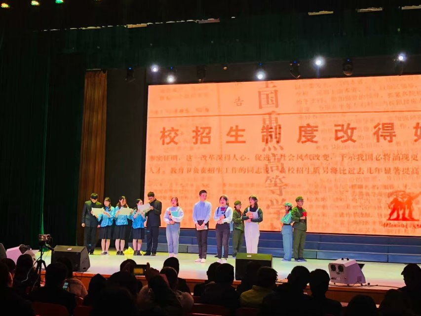 决赛现场,经过层层选拔和反复遴选,球王会平台的陈雅文和梁嘉怡从学院的初赛和学校的复赛中脱颖而出。依据她们所选的参赛诗歌《相信未来》为主题,分别以1935年、1949年、1978年、2018年为故事背景生动再现了各时代背景下青年爱国的故事。