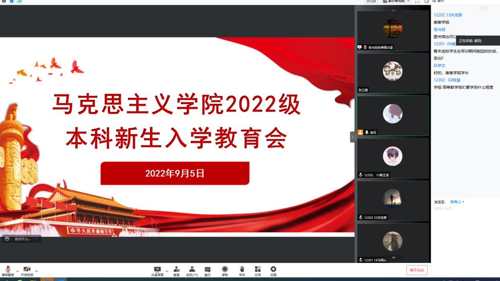 随着迎新工作的圆满结束,球王会平台,球王会网站新生入学教育系列活动也拉开了序幕。9月5日上午,球王会平台通过腾讯会议召开了2022级本科生线上见面会,全体辅导员、全院本科新生共同参会。会上,辅导员张云雾结合校史校情宣讲了学院的发展历史、办学情况,开展了疫情防控安全教育,团委书记李敏介绍了学院共青团工作,党委副书记马小佼勉励新同学:希望同学们在新的人生起点学会适应、学会自律、学会规划;希望同学们遵守校纪校规、关注生命安全,珍惜大学时光。随后,新生从个人基本情况、未来规划等方面进行了自我介绍,将活动推向了高潮。当日,新生们还自学了疫情防控政策,以宿舍为单位观看防诈骗教育视频,由学长学姐领学了学校的规章制度,将安全文明教育落到了实处。