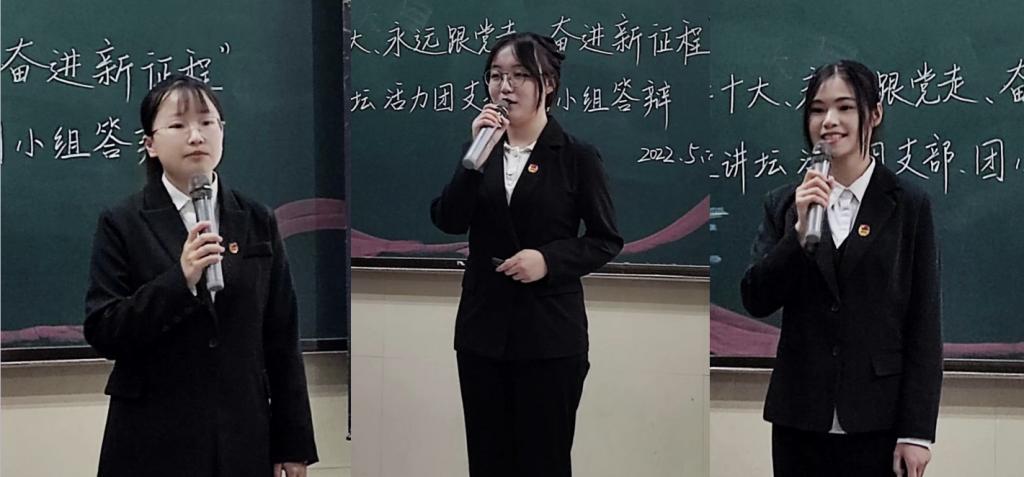 活力团小组的优秀展示,赢得掌声雷动,在热烈的掌声中活力团支部答辩拉开帷幕。“敢将日月再丈量,今朝唯我少年郎”12101团支部从生活、思想、社会实践三方面建设班级积极文化,新时代路上,支部团员奋发图强携手同行;高擎的团旗履行着责任,飘扬的团旗昭示使命,青春行之不悔、使命不至不归,这是12102团支部的坚定信念;12001团支部团员从五湖四海而来,相聚一起,同呼吸共奋斗,党旗所指就是团旗所向,坚定不移跟党走,谱写新时代青年奋斗华章;初心不改跟党走,时代新篇见担当,12002团支部从制度、思想、文化建设班级,每一位团员都是夜空中最亮的星,一起向未来进发。