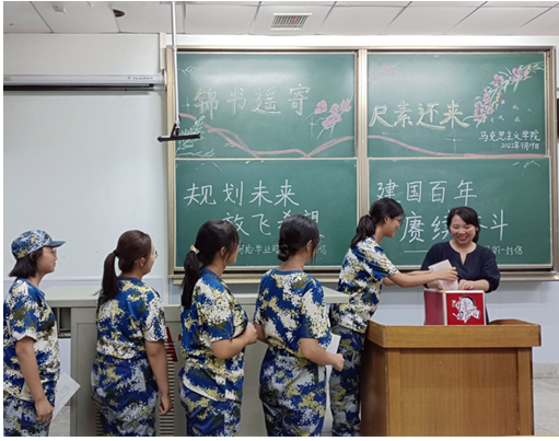 其后,同学们将写完的信件郑重地装进信封,排着队走向讲台,依次放进学院精心准备的信箱之中。张老师在收集信件之时,也不忘殷切嘱托同学们要心怀理想,按照自己的规划努力向前进发。