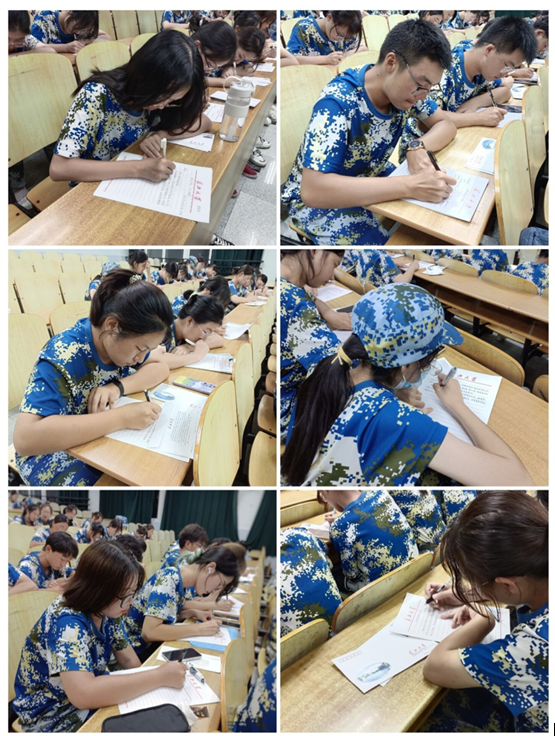 活动伊始,张老师对22级新生们进行了亲切的问候并详细介绍了本次书信活动,让同学们给毕业前以及建国百年之时的自己分别写两封信,鼓励同学们珍惜当下,志存高远,向往未来!新生们深受感触,拿到信纸后,大家纷纷凝神静思,动笔写下自己对未来的期许与向往,脸上无一不洋溢着对大学生活的憧憬。在写信给2049年的自己时,大家都对祖国的未来表达了充足的信心并希望未来的自己也能为祖国的建设事业贡献一份力量。