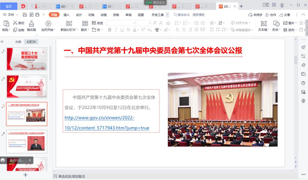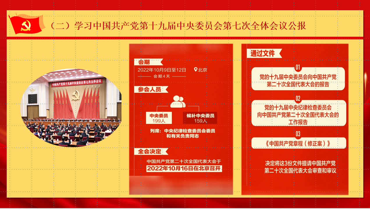 “全会总结了党的十九大以来5年的工作。一致认为,党的十九大以来的5年,是极不寻常、极不平凡的5年。”2022年10月27日下午,球王会平台,球王会网站本科生党支部在文科楼1008室召开了主题党日活动,支部党员李光钰同志领学了中国共产党第十九届中央委员会第七次全体会议公报。此次全会听取和讨论了习近平受中央政治局委托作的工作报告,讨论并通过了党的十九届中央委员会向中国共产党第二十次全国代表大会的工作报告,讨论并通过了《中国共产党章程(修正案)》,决定将这3份文件提请中国共产党第二十次全国代表大会审查和审议。全会充分肯定党的十九届六中全会以来党中央的工作,总结了党的十九大以来5年的工作,强调党的十九大以来5年党和国家事业的重大成就,是在以习近平同志为核心的党中央坚强领导下、在习近平新时代中国特色社会主义思想指引下全党全国各族人民团结奋斗取得的。大会总结了党的十九届中央纪律检查委员会的工作。
