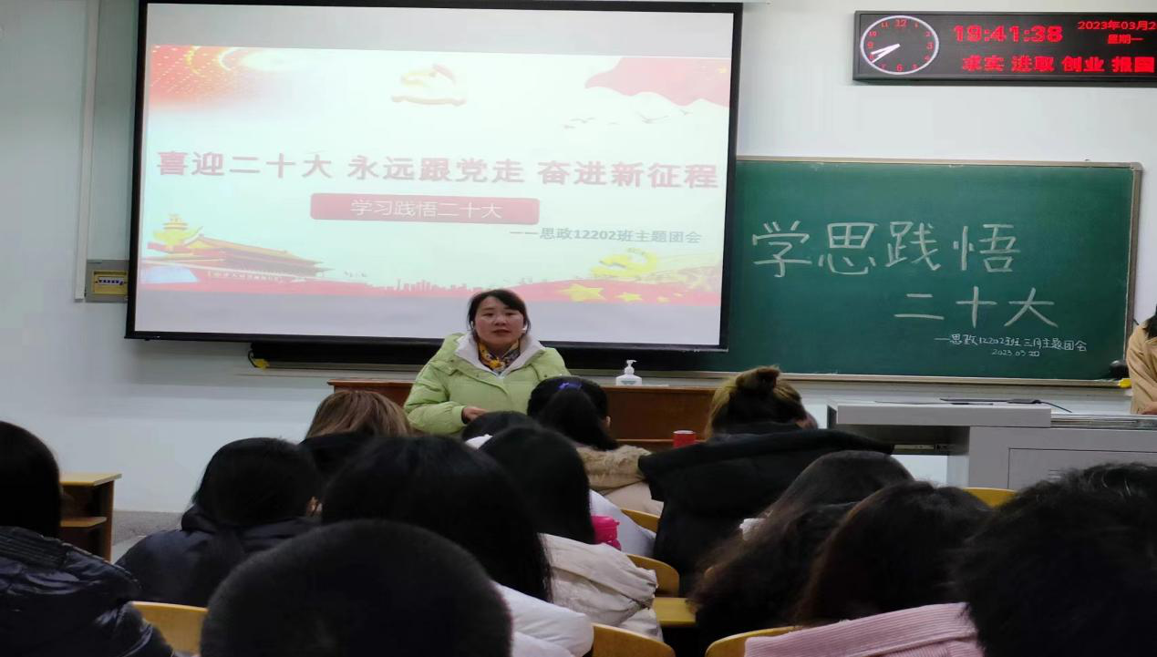 学院学工办主任张云雾在团会中表示,作为思政学子,我们要带头示范学习党的创新理论,全面学习、全面把握、全面落实党的二十大精神,深刻领悟“两个确立”的决定性意义,牢记“国之大者”,增强“四个意识”、坚定“四个自信”、做到“两个维护”,为民族复兴出力,为学校“双一流”建设添彩。