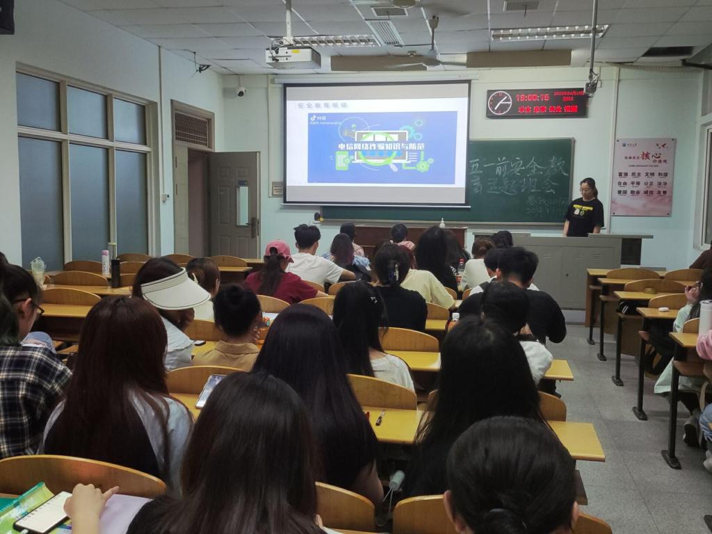 4月19日至4月24日,各班级以线上线下相结合的方式召开了安全教育主题班会,班主任、辅导员到会指导。班会中,重点开展了防溺水、防诈骗、交通安全、消防安全、生命安全等安全教育,学习了假期安全提示,副班长还详细宣讲了节假日请销假手续办理流程,登记了全班同学留离校情况。
