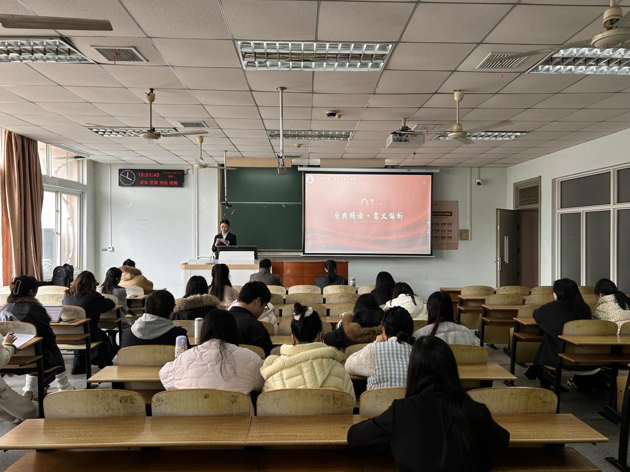 邹玲君同学结合自身的经典研读经历,分享了高效阅读、深度研究经典著作的方法与心得,鼓励同学们深耕文本内容、联系社会实际,在经典品读的过程中持续提升自身理论素养与学术研究能力。 此次研究生品读会的顺利举办,为学院研究生搭建了经典研读、思想交流的优质平台,有效激发了同学们研读马克思主义经典著作的热情,进一步夯实了学院研究生的理论基础,助力大家在经典浸润中坚定理想信念、提升专业能力。