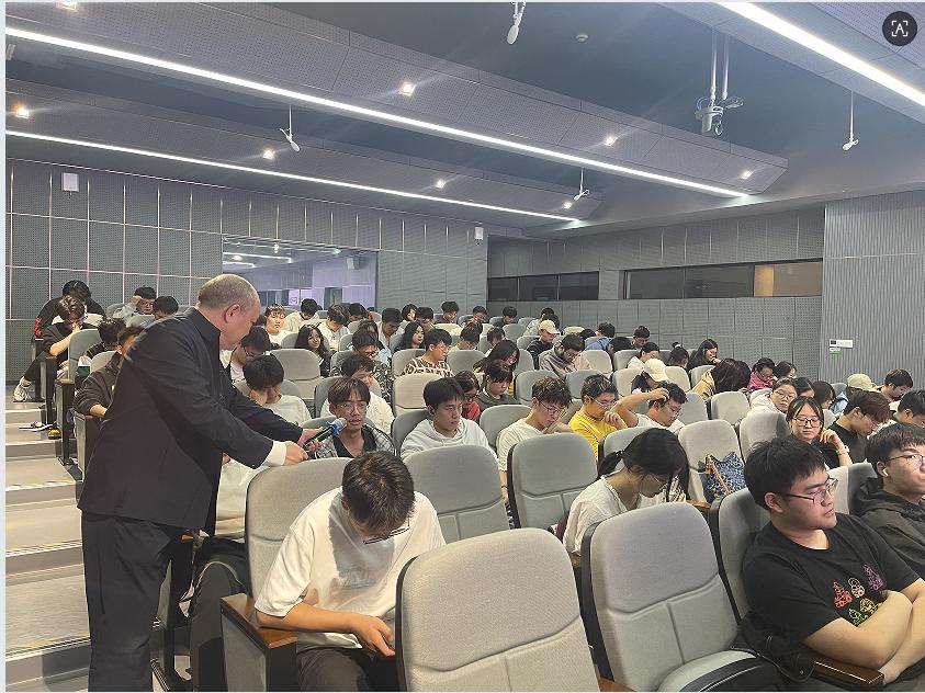 课堂伊始,姜学勤以“我们从哪里来,要到哪里去?”这一哲学命题切入,引导学生思考个体生命在历史长河中的位置。他从“碳基生命与硅基生命”的比较谈起,探讨生命形式的本质与文明发展的多元可能,进而引出对上大学的意义、如何认识中国与世界等现实问题的层层追问。