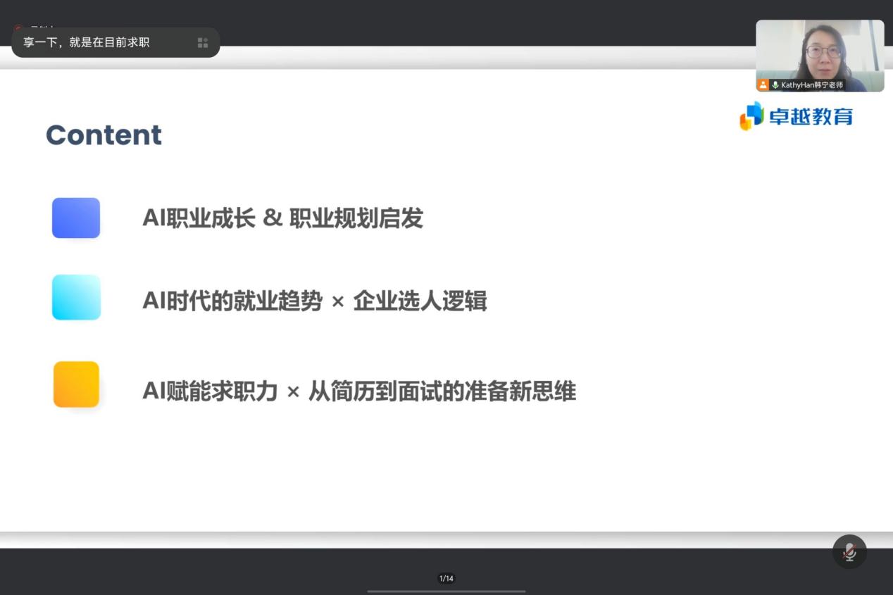 (通讯员 李欣怡)在AI技术飞速发展的当下,如何打造专属求职竞争力、做好职业规划?为深入推进供需对接就业育人,促进学生明确职业方向、提升核心竞争力,12月24日下午,球王会平台,球王会网站邀请卓越教育集团资深人力资源专家韩宁老师以“AI时代的求职力成长课——职业规划思维启航”为题开展了生涯规划与就业指导专题讲座,学院学工办主任张云雾以及本、研学生以线上方式参与了讲座。